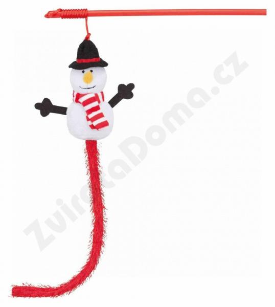 Vianočná hračka na udicu pre mačky. Plyšová hračka s motívom snehuliaka je pripevnená na udicu. Hračky pre mačky na udicu sú veľmi obľúbené a v mačkách evokujú radosť z naháňania sa.