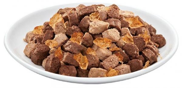 Zloženie: deriváty mäsa a zvierat (4% králik, 4% morka), obilniny, extrakty z rastlinných bielkovín (0,4% inulín), minerálne látky