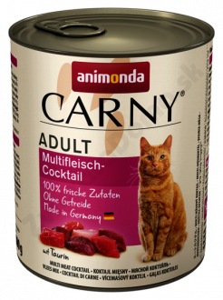 Deklarované akostné znaky: proteín 11,5%, tuky 6,5%, vláknina 0,5%, popoloviny 1,8%, vlhkosť 79%, taurín 0,8g/kg