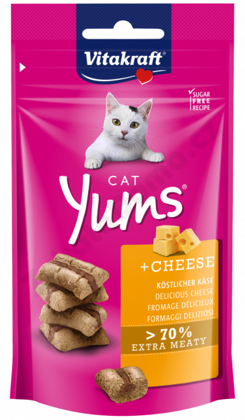 Zloženie: mäsové a vedľajšie produkty živočíšneho pôvodu 72% (kuracie, bravčové, hydinové), zelenina, rastlinné bielkovinové extrakty, mlieko a vedľajšie mliečne produkty (syrový prášok 1,4%, čo zodpovedá 3,2% čerstvého syra), kvasnice, minerálne látky, vedľajšie rastlinné produkty
